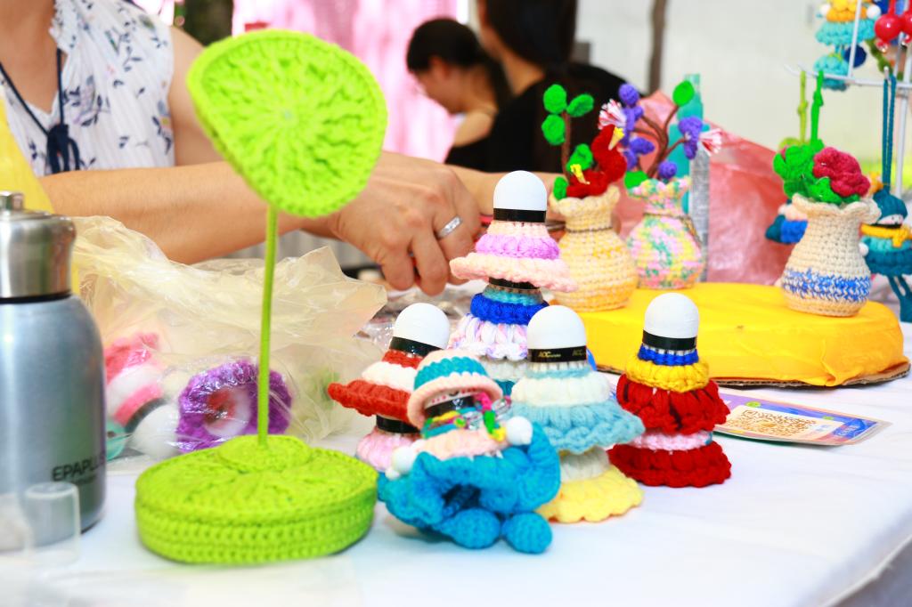 本次市集以“创意与创业、创新与多元、开放与融通” 为核心理念,现场划分多个特色区域。“非遗文化展示和体验区” 里,传统手工艺人现场演示瓯绣、瓯塑等非遗技艺,让参与者近距离感受传统文化的魅力;“温州学文化传播区” 通过图文展览、AI作品展示等形式,展现温州独特的地域文化;“大学生文创产品区” 则集中展示了浙工贸学子及校友的原创作品,涵盖创意手作、科技文创等品类,不少作品融入了绿色低碳理念,彰显青年创新思维。