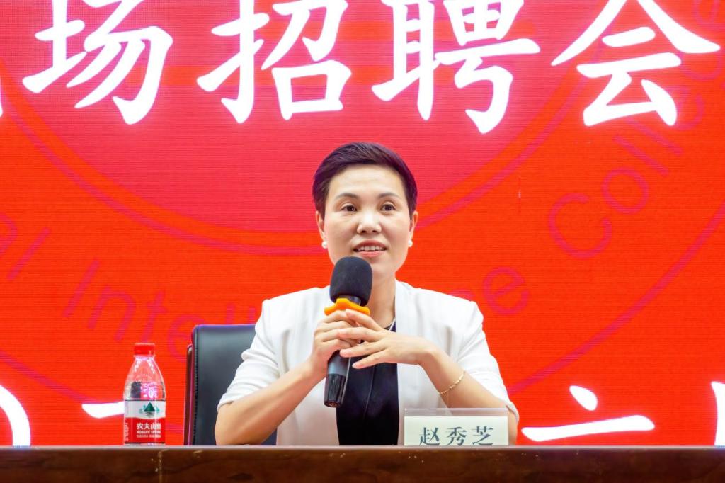 招聘会伊始,首先由人工智能学院副院长钱月钟详细介绍了本次招聘会的整体安排,为活动顺利开展奠定基础。随后,赵秀芝院长发表致辞,她首先对各企业代表的到来表示衷心感谢,强调此次实习机会的宝贵性,鼓励同学们紧紧抓住机遇,积极参与其中。同时,赵院长提出专业与产业深度匹配的重要性,提醒同学们要重视在实习平台中的实践成果积累与展示,并着重强调在企业实习过程中的安全问题,叮嘱同学们时刻牢记安全第一。