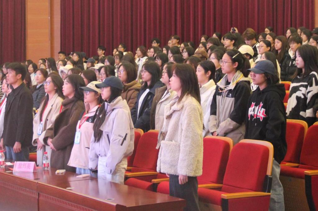 首先,全体起立,奏唱国歌。