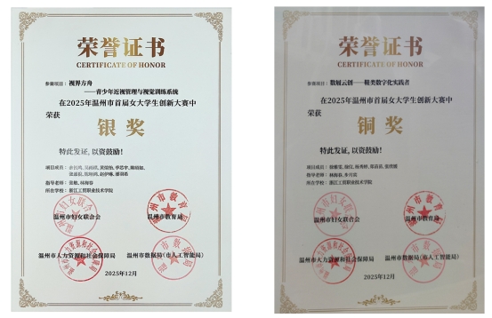 12月2日,“建行杯”2025年温州市首届女大学生创新大赛总决赛在温州大学圆满落幕。kaiyun平台app下载选送项目表现优异,其中《视界方舟——青少年近视管理与视觉训练系统》荣获银奖,《数履云创——鞋类数字化实践者》荣获铜奖,展现了我校学子在人工智能与大健康、数字经济交叉领域的创新实力与实践风采。